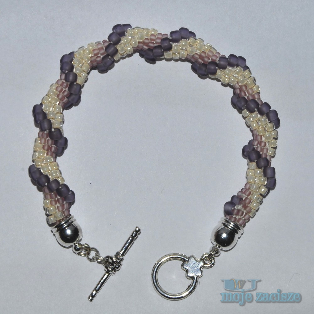 powstaje podczas nawlekania koralików o różnej wielkości. Wyplata się jak zwykły sznur.