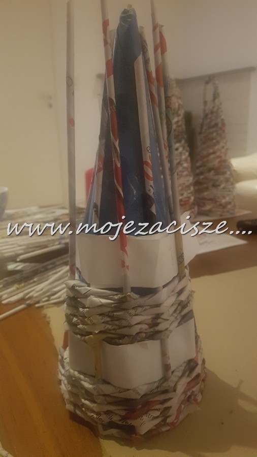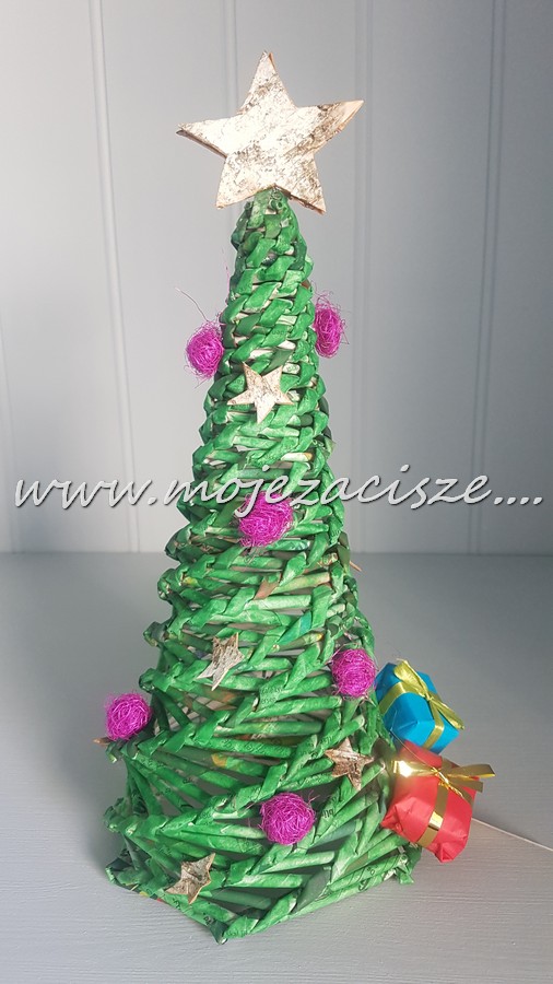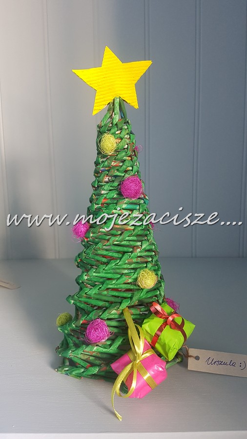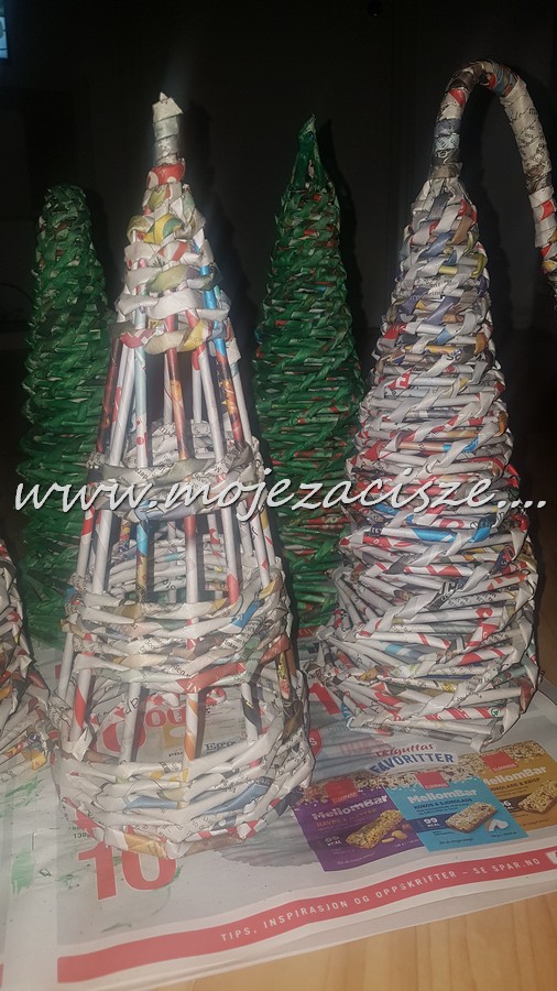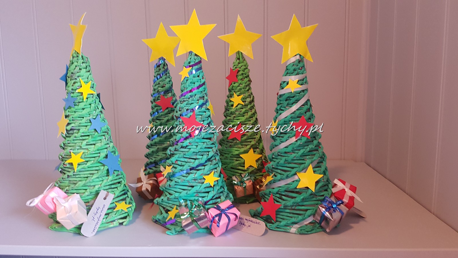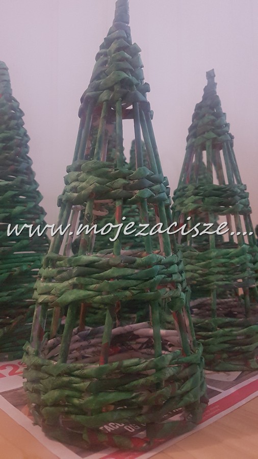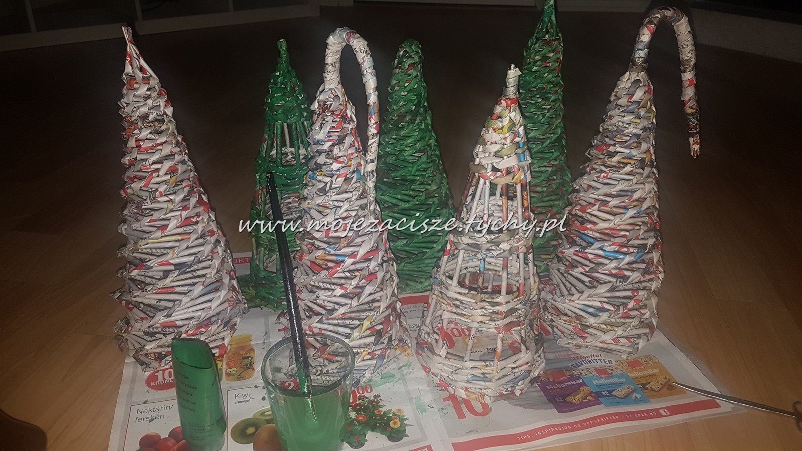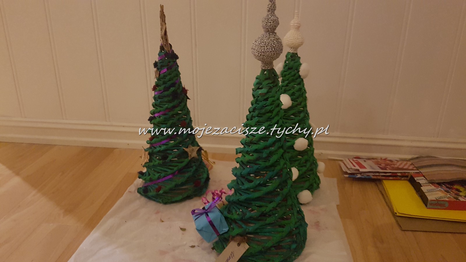zrobić jeszcze wiklinowe choinki. I tak produkcja się zaczęła. Najbardziej lubię ten moment kiedy są już pomalowane i zaczynam je stroić