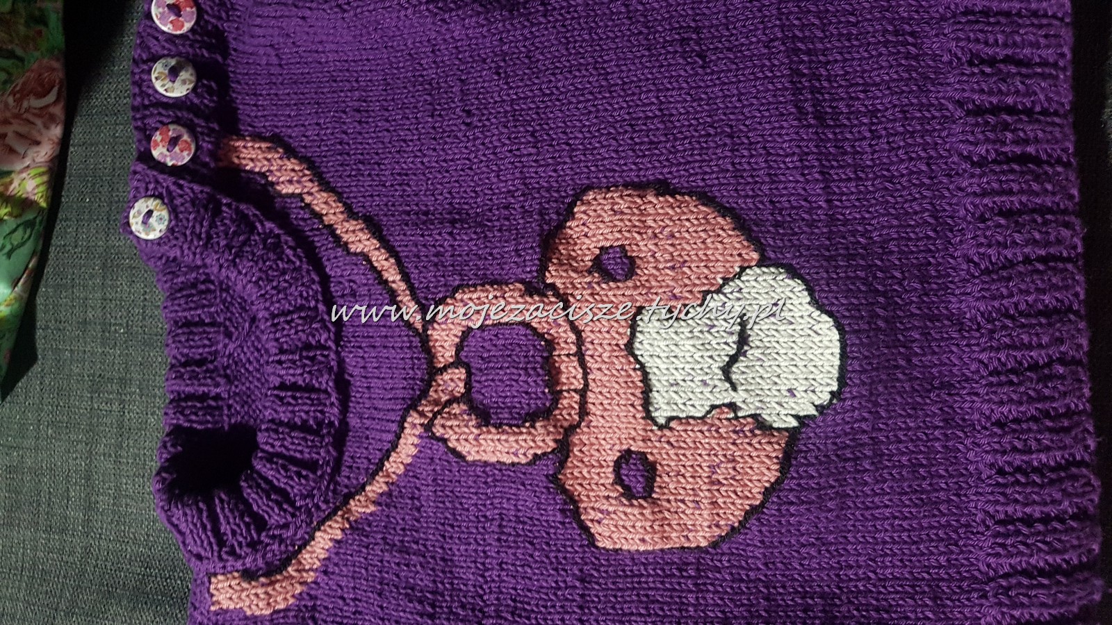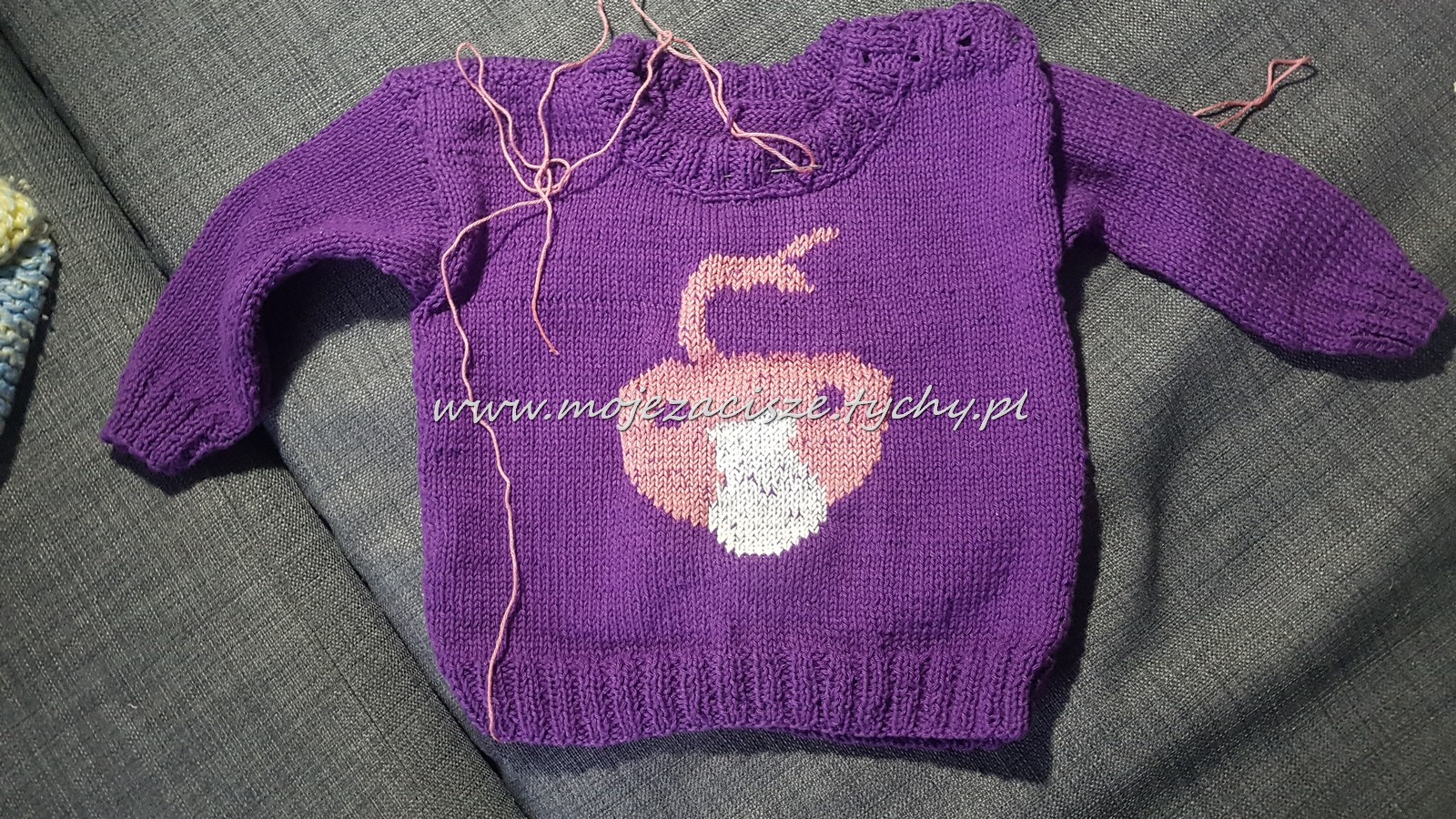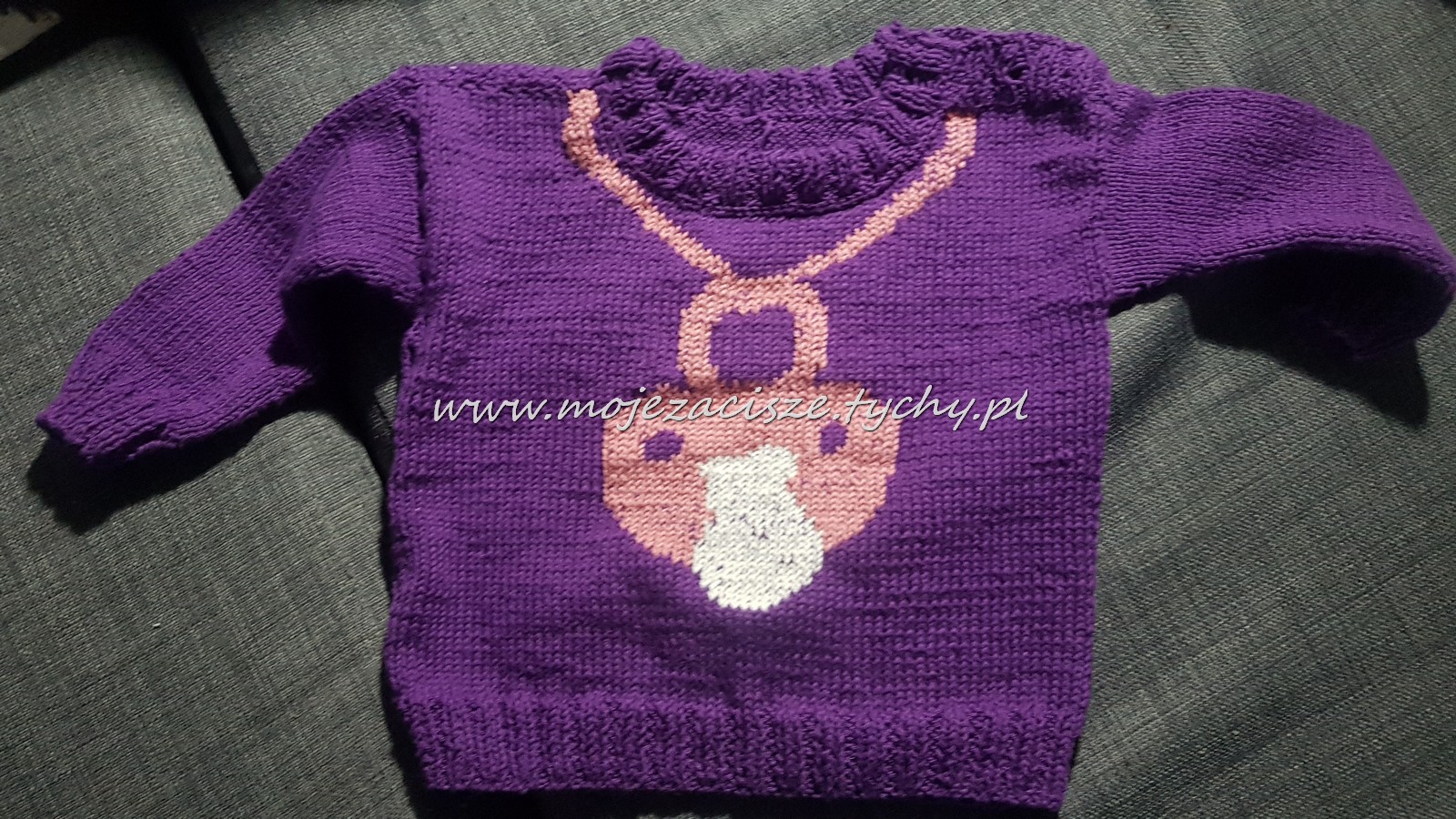 Wzór w opisie jest wrabiany , ale ja go wyszyłam już na gotowym sweterku .