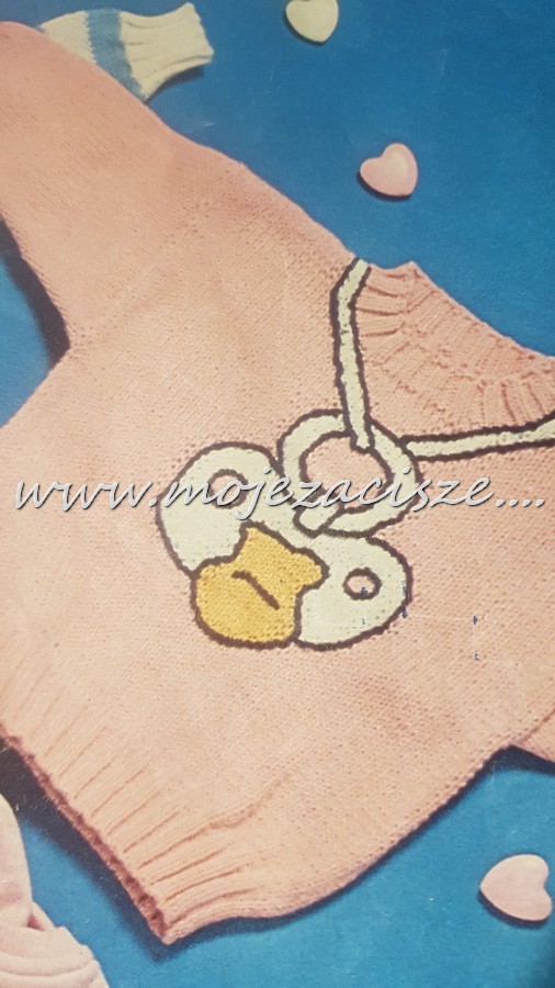 Płacze maleństwo trudna adaptacja. Może sweterek od babci trochę poprawi nastrój. Wzór ma już 30 lat. Kupiłam gazetkę jak córcia była malutka też miała taki sweterek . Gazeta przeleżała w szufladzie tyle lat i ma znów swój czas