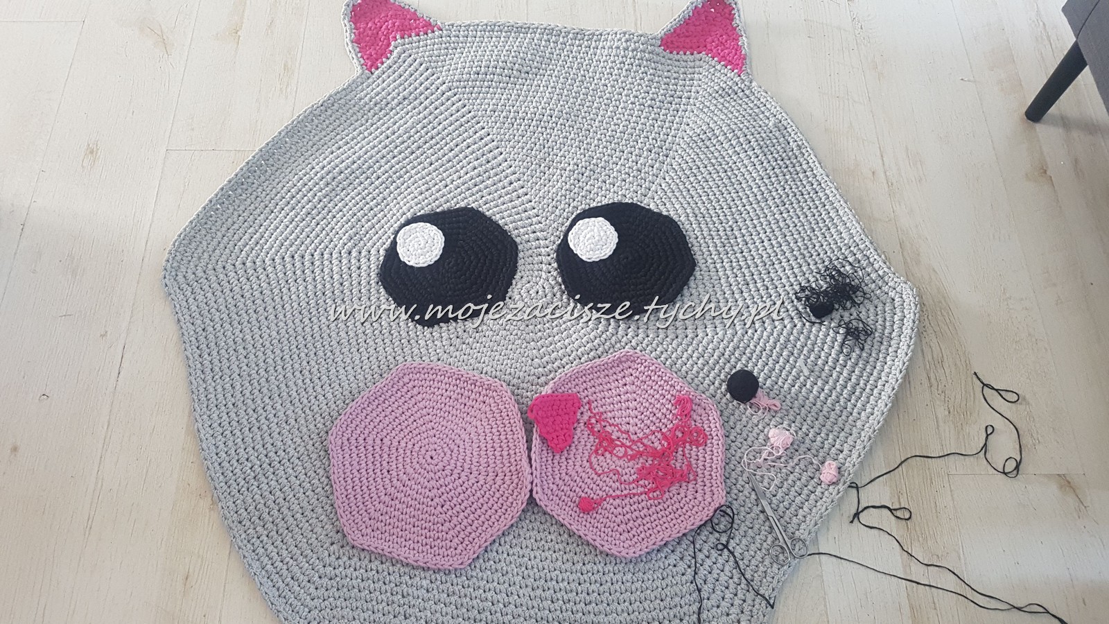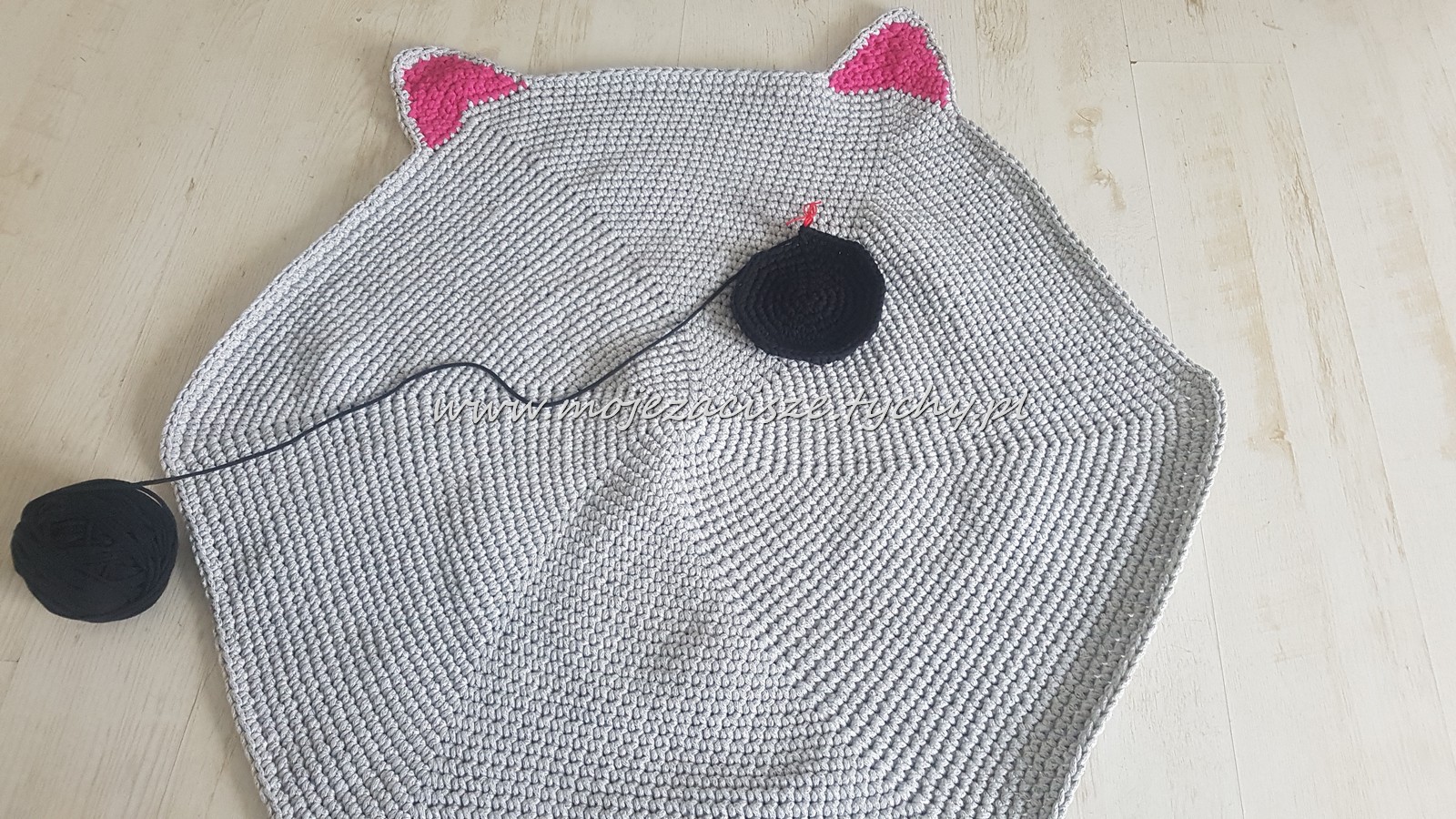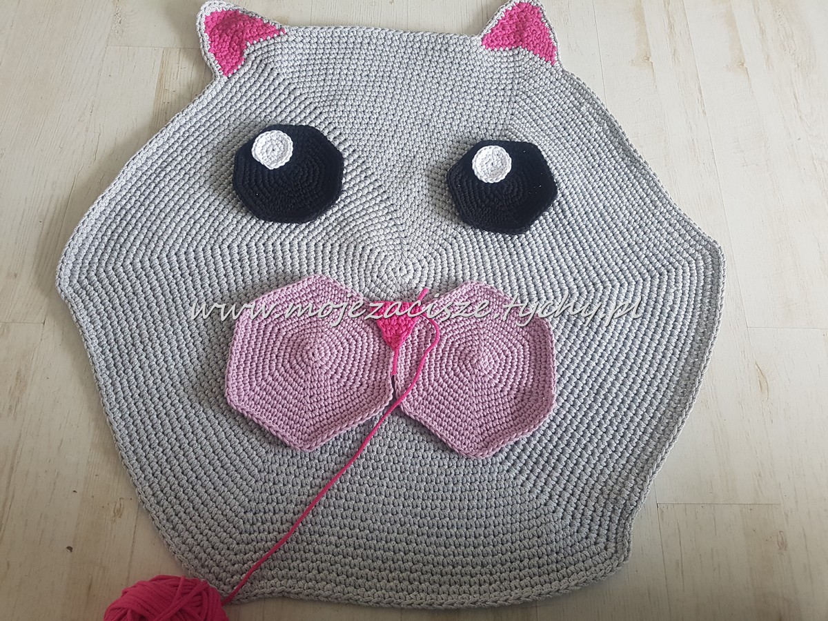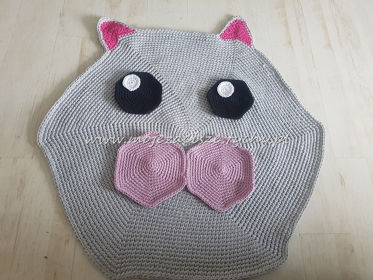 Pomysł na szydełkowy dywanik chodził za mną już jakiś czas. Ciągle było jakieś a to ..a to sznurek za ciemny, a to szydełko za cieńkie, a to może za trudne. ?Wreszcie się odważyłam. Początkowo miał być miś jednak miłość do kotów zwyciężyła.? Wąsów już nie zdążyłam wyszyć bo Łucja z niego nie schodzi.?♀️ Sznurkowy dywan można wyprać w pralce wg zaleceń producenta sznurka.