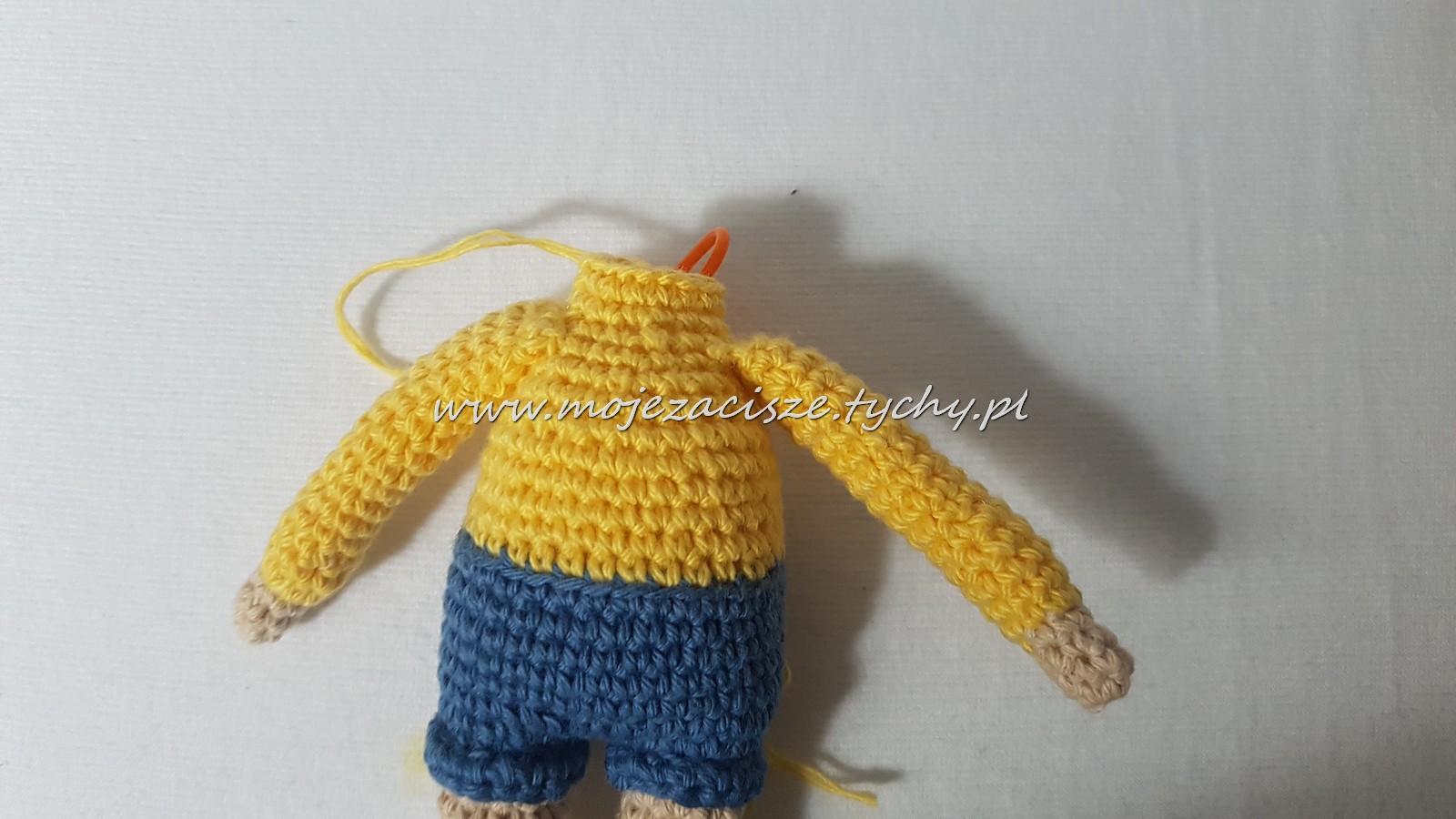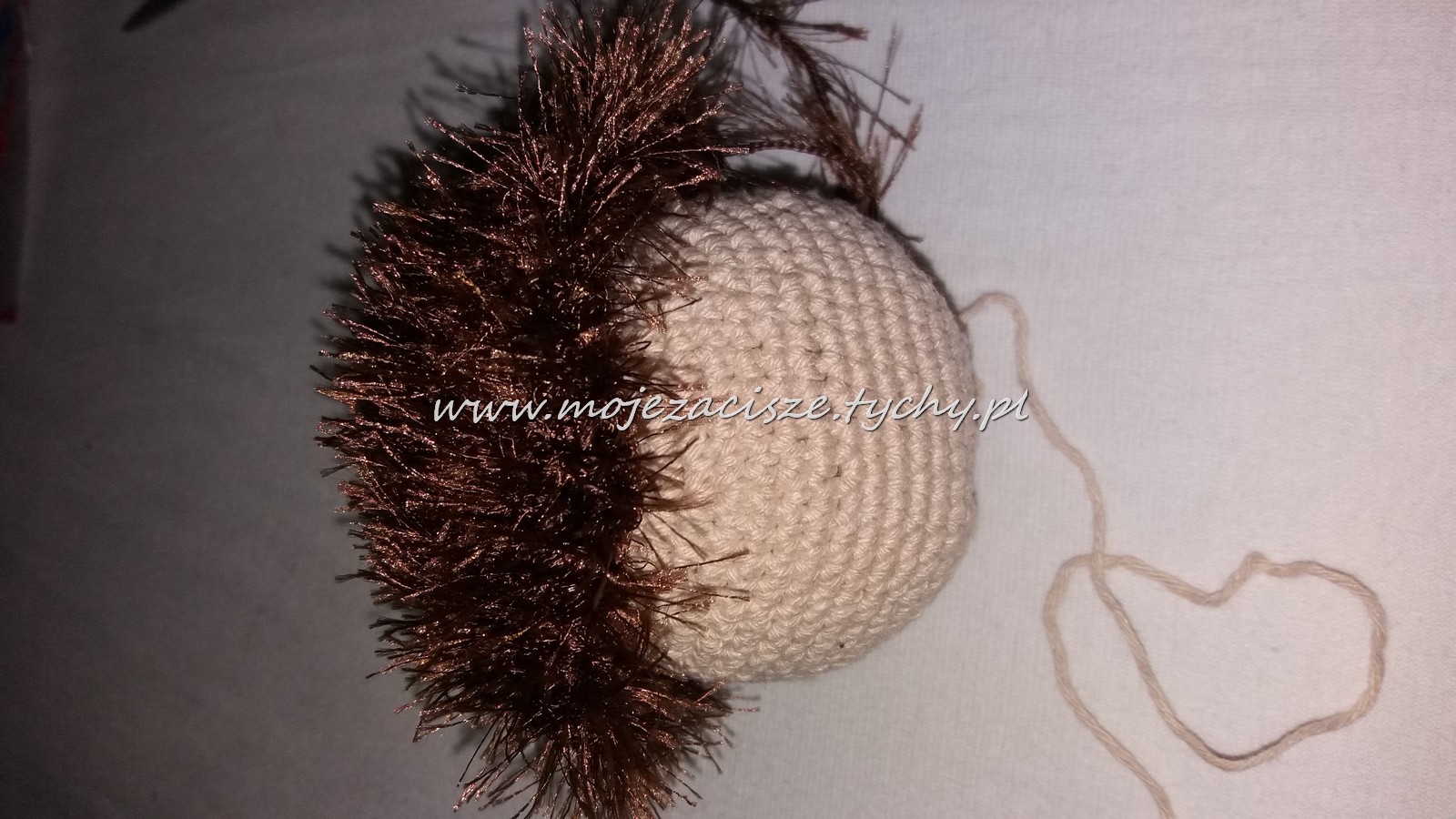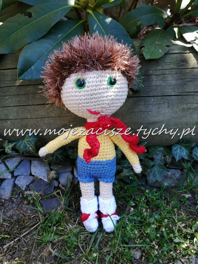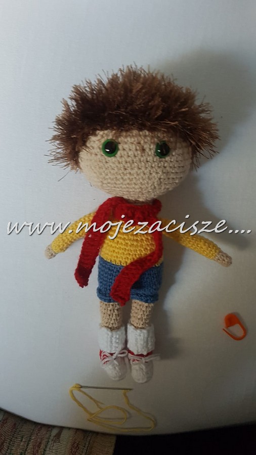 Krzyś powstał z resztek włóczki z wykonania  maskotek  Puchatka . Włosy z włóczki Yarn Art Samba kolor brązowy