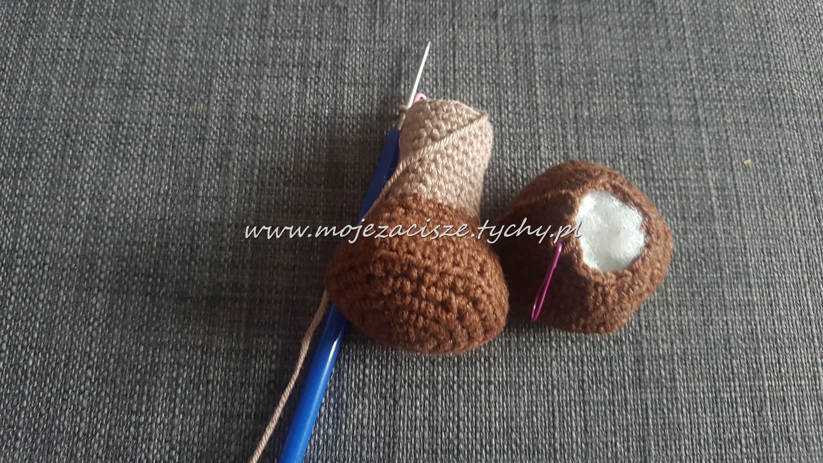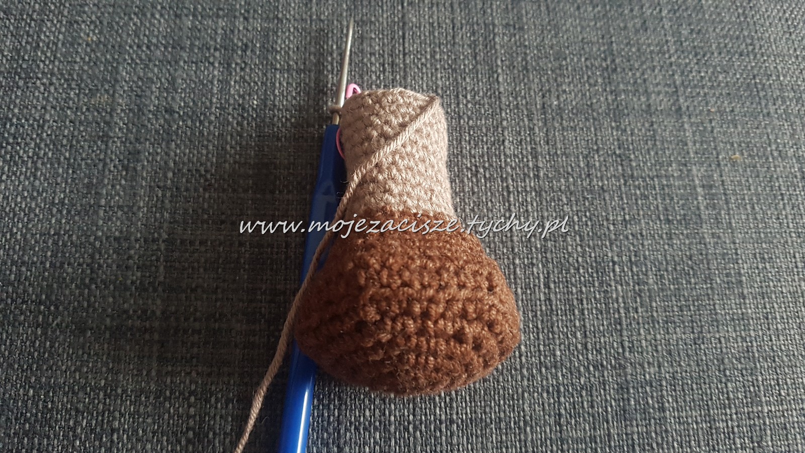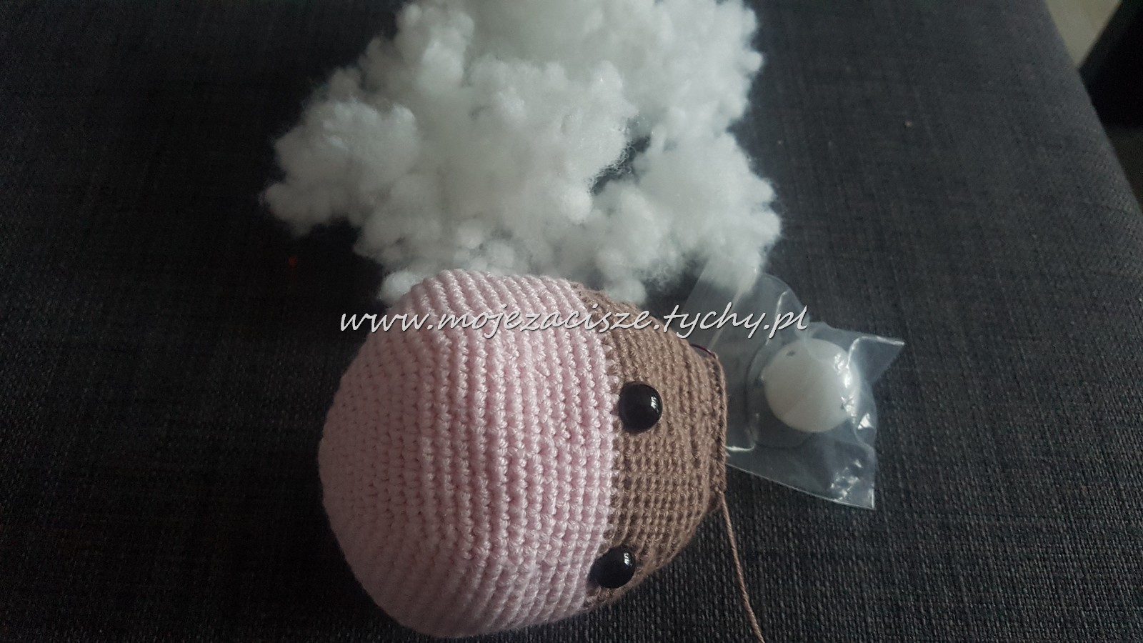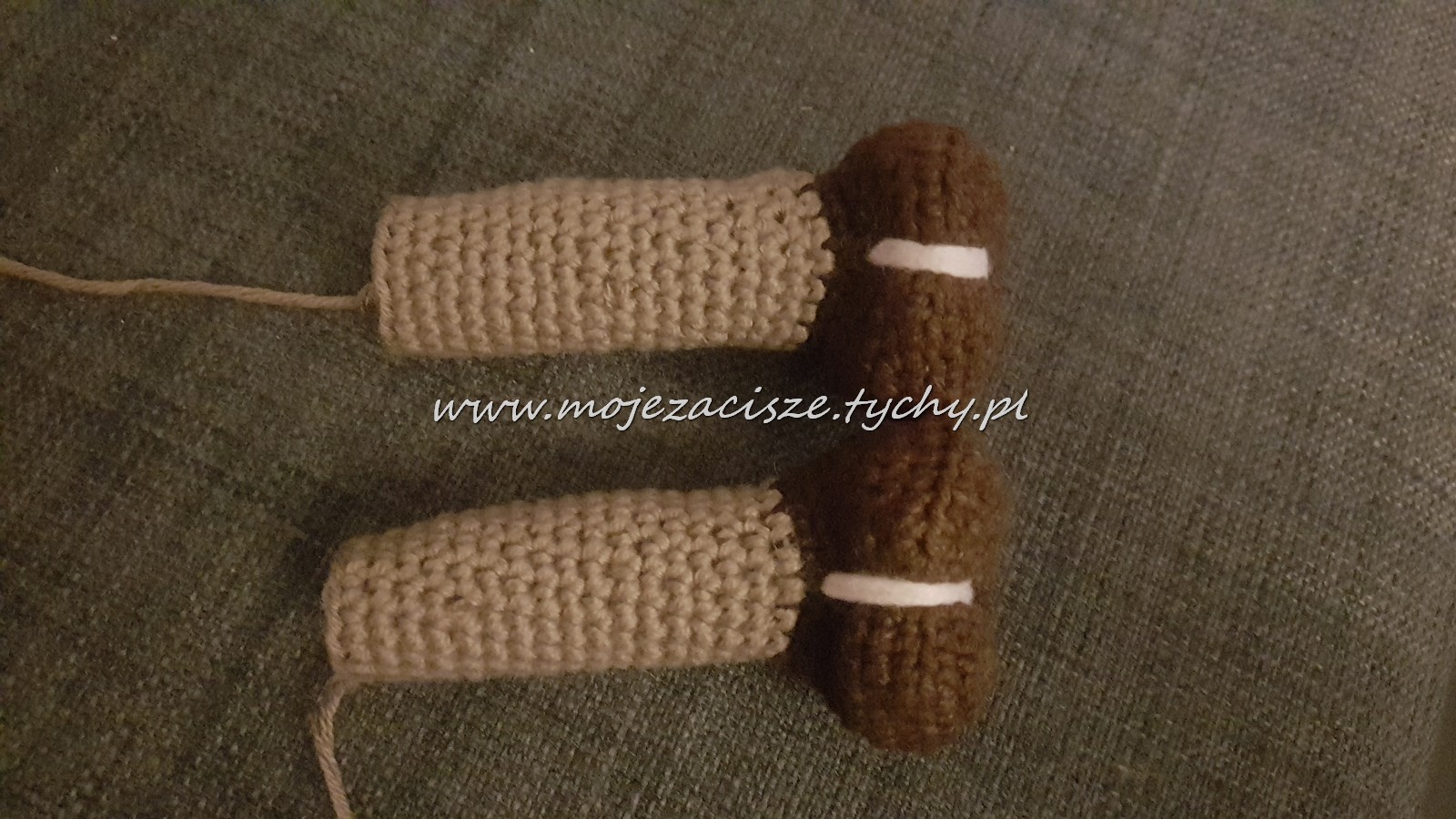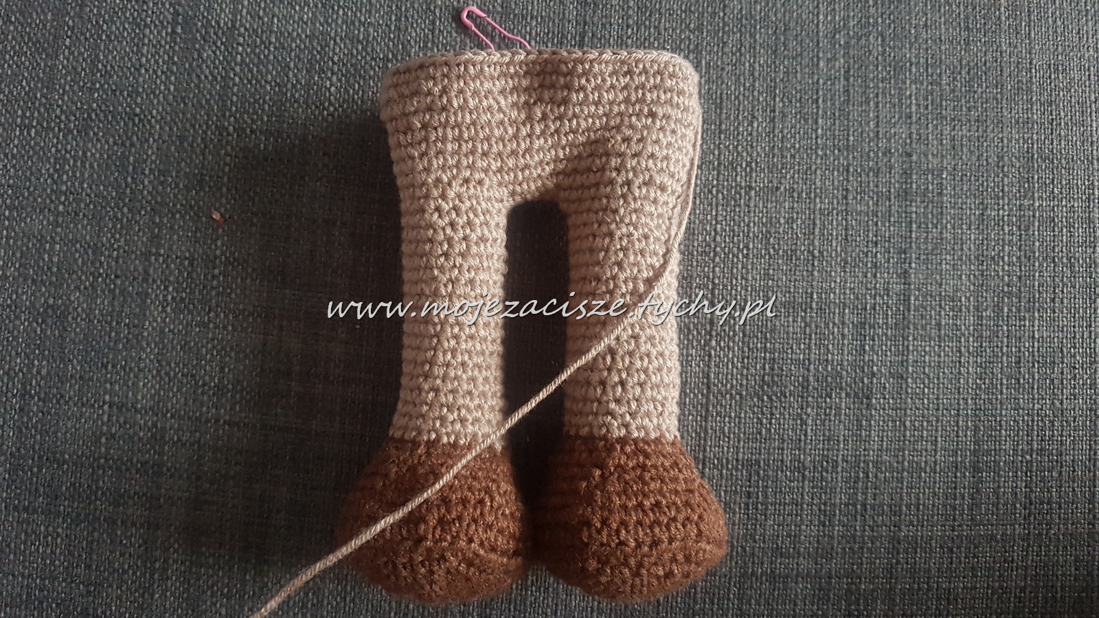 Maskotka ma dwie grzechotki jedną w główce a drugą w łapce. Tak się zapędziłam w pracy ,że maskotka powstała w 2 dni.