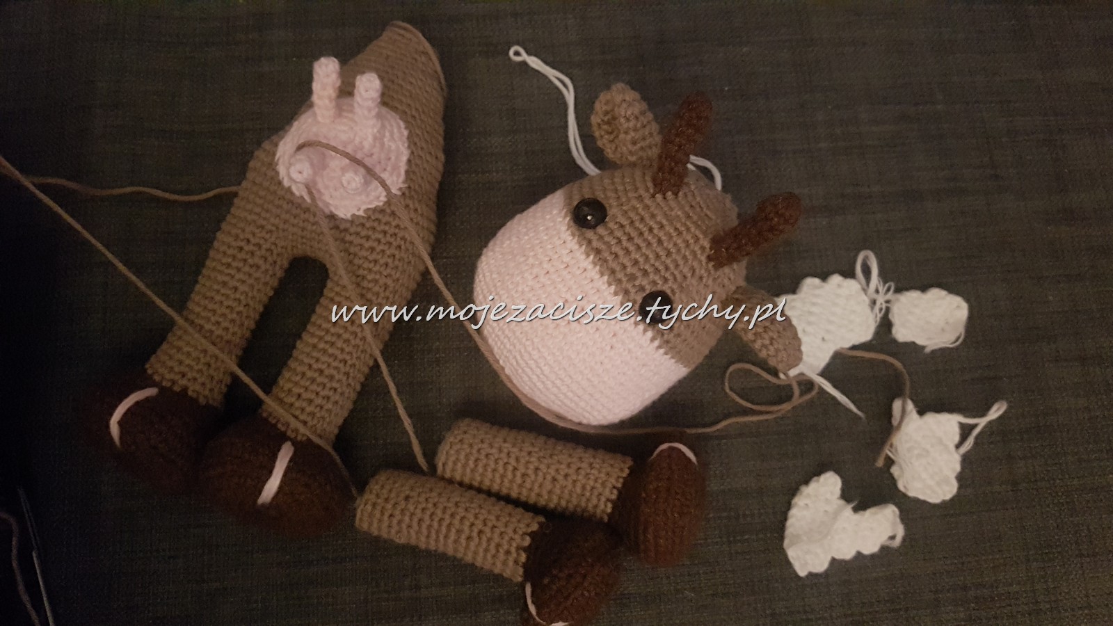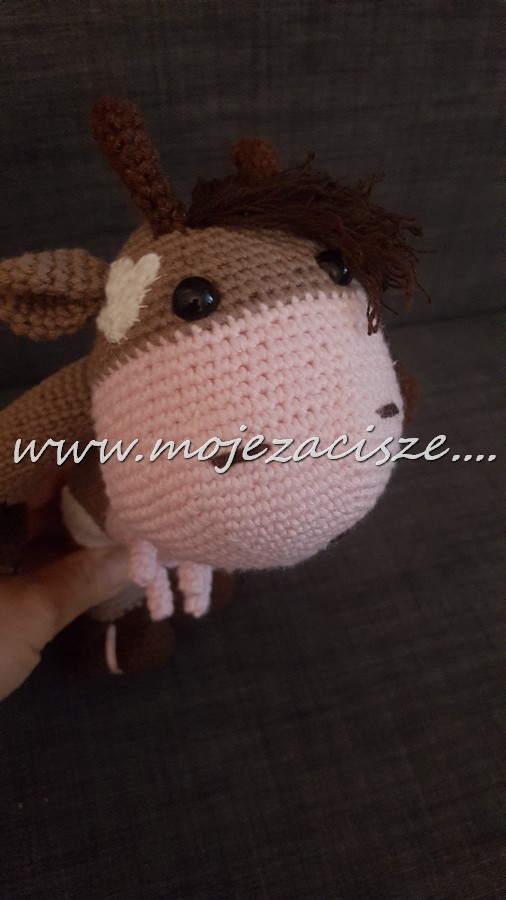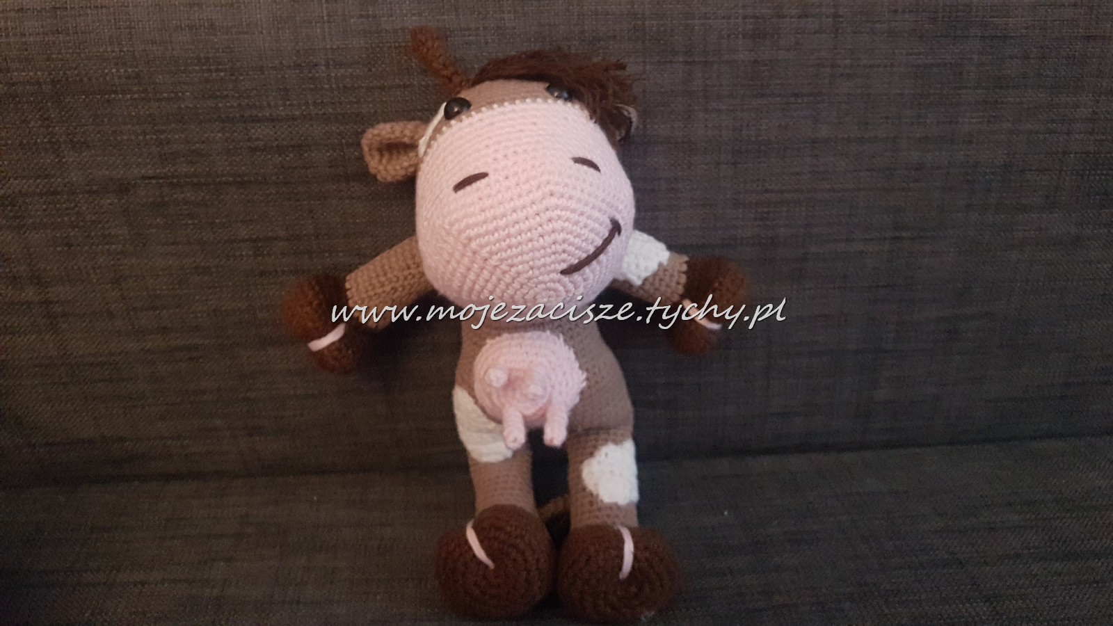 Nie mam wzoru na wykonanie krówki. Nie mogłam się zdecydować na żaden konkretny schemat, przeszukiwałam internet i ze zlepku różnych zdjęć powstała nasza łaciatka.
