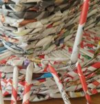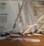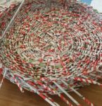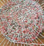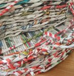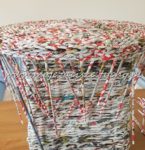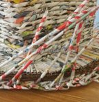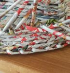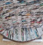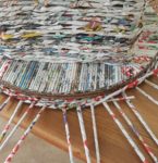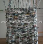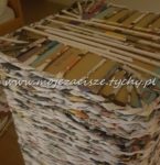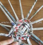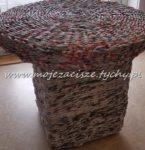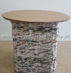 Do wykonania rurek wykorzystałam lokalne papierowe oferty . Stabilności stolikowi doda pozostawiony w środku karton. Rurki wyplatane wzorem ósemkowym. Dla przedłużenia żywotności mebelka trzeba go polakierować bezbarwnym lakierem albo farbą . Ja swój zostawię niepomalowany bo wg mnie ma swój urok taki właśnie gazeciany . Od spodu dokleiłam zakrętki z plastikowych idealne sprawdzą się jako nóżki i papier od spodu tak szybko się nie zniszczy.